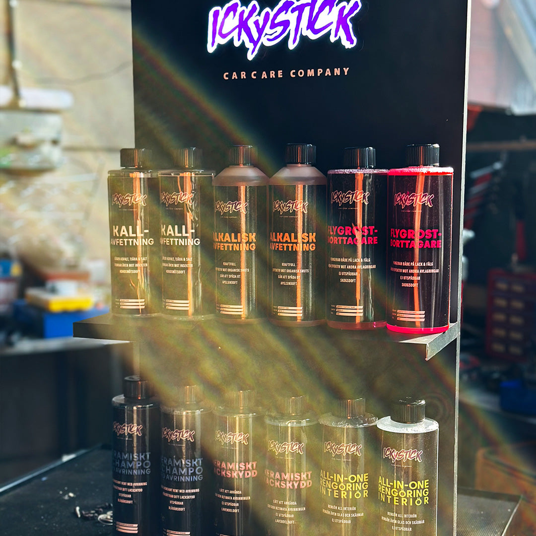 Hos Ickystick hittar du effektiva bilvårdsprodukter som avfettning, flygrostborttagare och keramiskt schampo – kombinerat med streetwear-inspirerade kläder och accessoarer. Snabb leverans till ditt närmsta ombud.